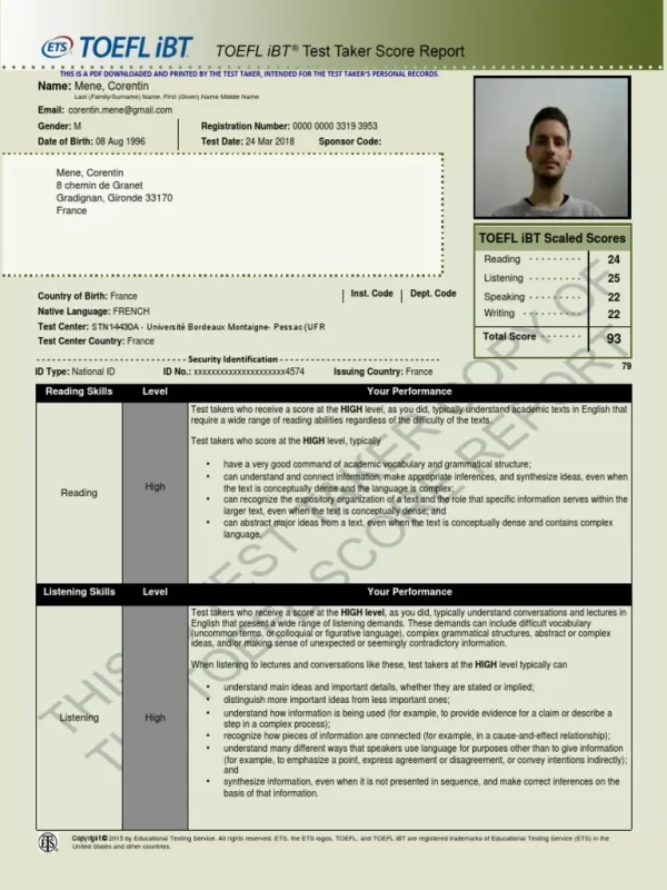 Buy registered TOEFL certificate without exams online. TOEFL is the most common academic English test worldwide but in some countries, such as the UK, universities prefer people to have a good IELTS score because they think it is a more accurate test of English level. TOEFL or the Test of English as a Foreign Language measures the capability of non-native English speaks to understand and use North American English as it is heard, written and spoken in university and college